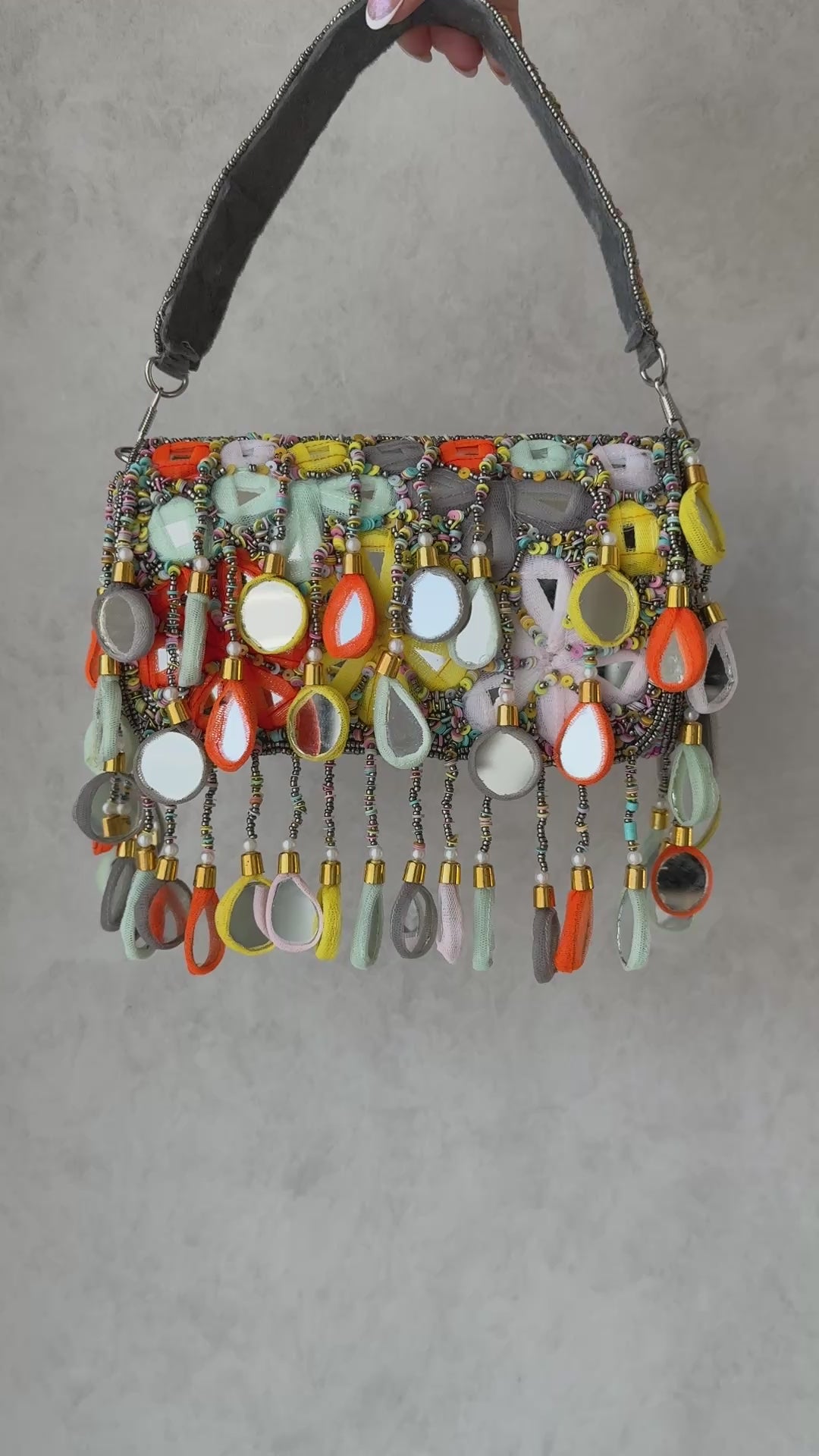 Introducing our new mirror bags featuring genuine mirror drop accents. These real mirrors create a captivating sparkle and add a unique, eye-catching element to the bag. Perfect for both day and evening occasions.
