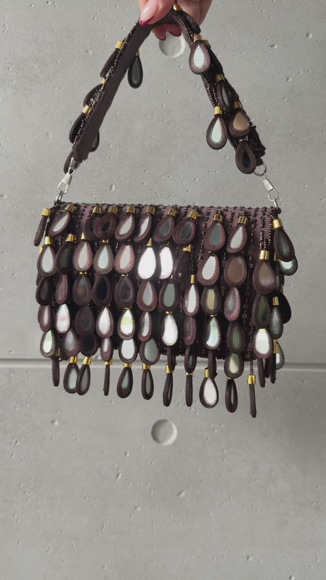 Introducing our new mirror bags featuring genuine mirror drop accents. These real mirrors create a captivating sparkle and add a unique, eye-catching element to the bag. Perfect for both day and evening occasions.