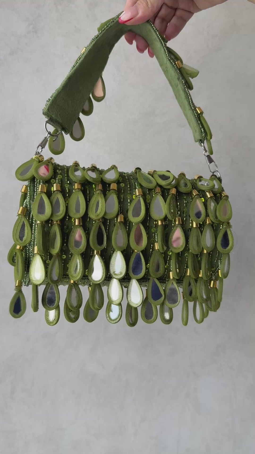 Introducing our new mirror bags featuring genuine mirror drop accents. These real mirrors create a captivating sparkle and add a unique, eye-catching element to the bag. Perfect for both day and evening occasions.